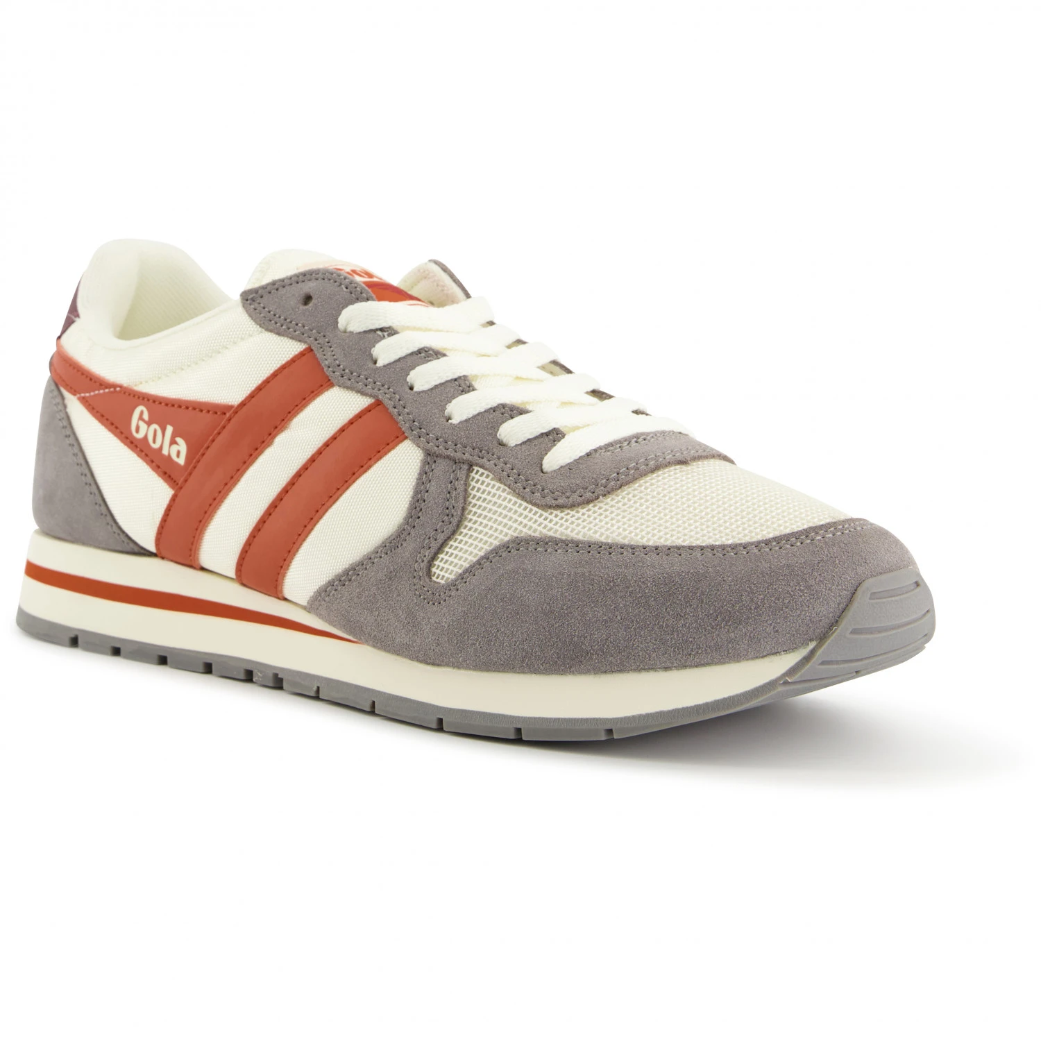 With the Daytona sneakers Gola recalls running shoe designs from the nineties. The retro colour palette creates a casual look but also makes the shoes genuinely eye-catching. A fusion of functional synthetic and fine leather creates both a high level of comfort and a look that works. The EVA midsole is comfortably cushioning and has a coloured central strip that picks up the design of the uppers.