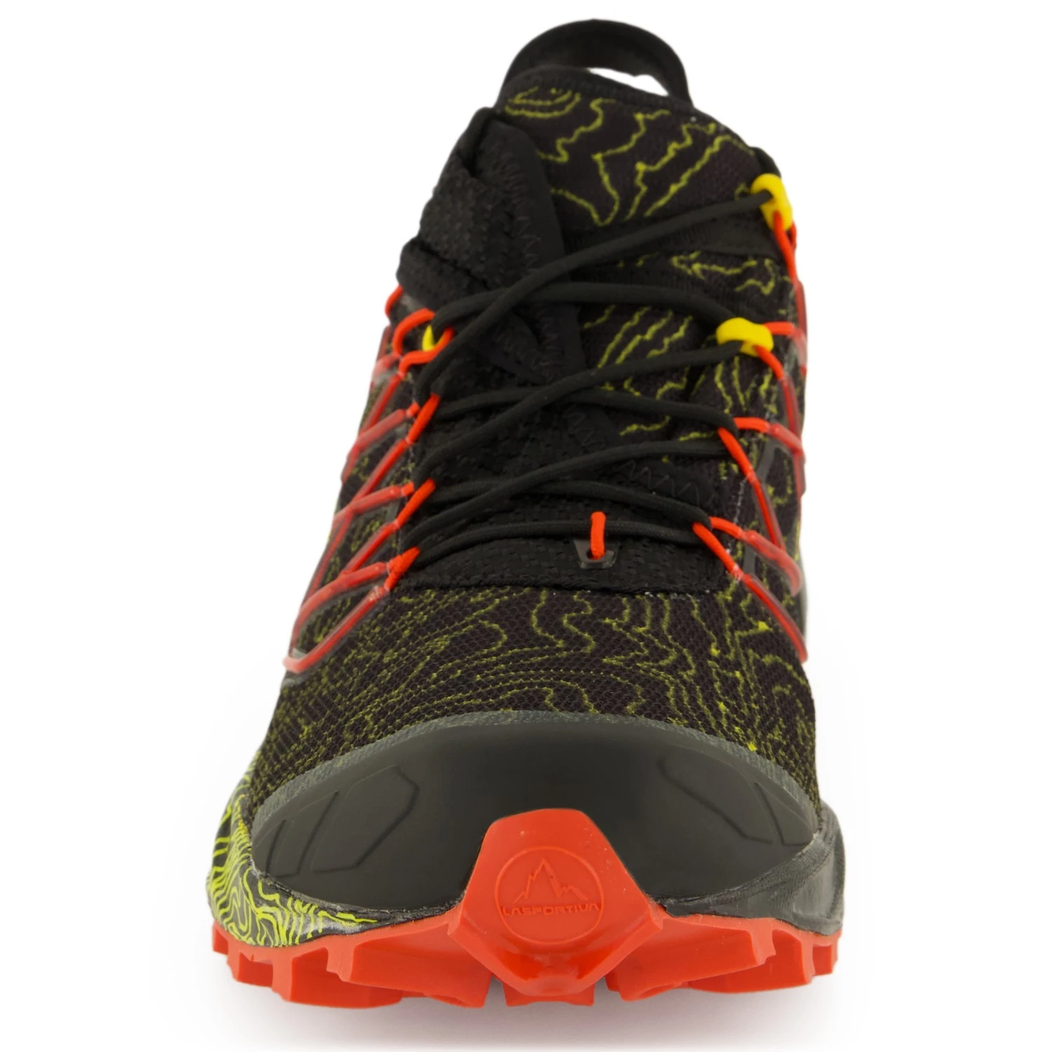 The extremely lightweight and sturdy Mutant trail running shoes from La Sportiva are ideal for medium and long distances. These shoes are particularly well-suited for use on technical surfaces, such as roots, stones or muddy ground. This is due to the high stability of the shoes in combination with an extremely high-traction outsole, which guarantees a solid grip in any situation. In addition, the shoes feature a robust lacing system so that they fit comfortably, even when running all day through rough terrain. The laces are attached using an ingenious system that distributes the force of the lacing over the entire surface of the shoes.